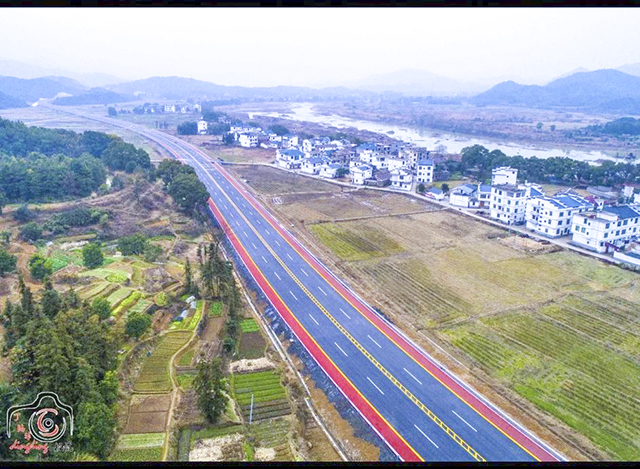 2018年1月1日,在铅山县河永快速通道(河口至永平)上,工人正在画标示线,这标志着该快速通道即将建成通车。距离2016年11月底开工以来,13个月的时间的紧张施工,这条横卧河口镇至永平镇之间,10分钟仅能行驶完全程的美丽公路,终于就要向世人“见面”了。