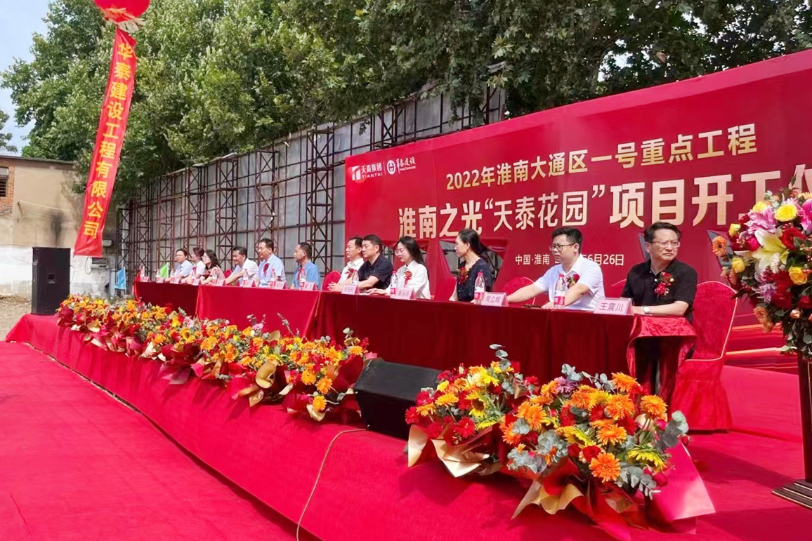 感谢长期以来关心和支持项目发展、关注项目建设的政府领导及各界朋友。华泰建设非常荣幸承接到淮南大通区一号重点工程——天泰花园项目,接下来,我们还将以昂扬的斗志、饱满的热情积极响应政府重大重点项目建设的号召,始终以创新、协调、绿色、开放、共享的发展理念为引领,秉承“诚信创新永恒,精品人品同在”的价值取向,坚持安全至上、质量第一,做高起点开局、高水平建设,将项目建设成优质工程、安全文明工地。华泰建设项目团队将全力以赴,早日让这一项重点工程投入使用,让拆迁户得以回迁,为解决群众的关切,维护社会稳定贡献华泰建设的力量,圆满完成政府领导和业主单位下达的光荣任务!