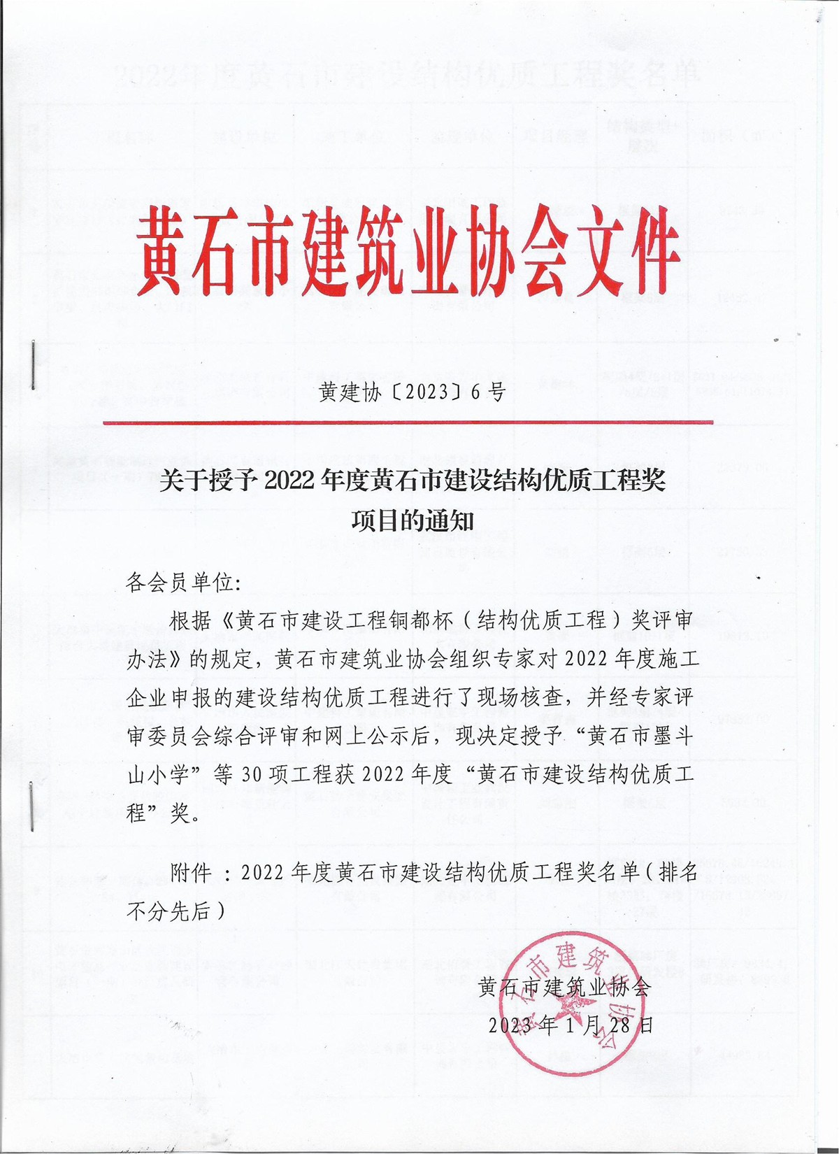 近日,在南昌市住房和城乡建设局发布的《关于2022年下半年建设工程质量管理标准化示范工地的通告》、黄石市建筑业协会发布的《关于授予2022年度黄石市建设结构优质工程奖项目的通知》中,经各属地工程质量监督部门推荐和专家评价,由易游·体育(中国)官方网站,YIYOU SPORTS承建的“南水大厦”项目与“太阳城·檀悦府二标段1#、7#、8#楼”项目分别荣获南昌市“2022年下半年建设工程质量管理标准化示范工地”、“黄石市2022年度建设工程铜都杯(结构优质工程)奖”。建设工程质量标准化示范工地评比是考核参建单位质量管理水平的重要标准之一,同时,建设工程铜都杯(结构优质工程奖)代表了建筑工程结构施工质量的高水平,也是精品工程的重要标志。获此两项殊荣,是对华泰建设项目施工水平及安全质量管理的充分肯定,彰显了华泰建设在工程项目管理、工程品质等领域的卓越实力。