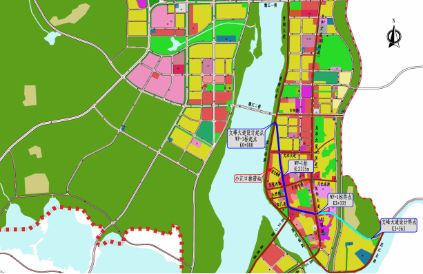 文峰大道起点与滨江南路交叉,然后沿现状文峰大道走向,向南分别于文水大道、文化西路、民营街、南门巷与南湾路交叉,然后折向东,与龙华大道(105国道)交叉,终于七里湾,路线全长3.738km。本项目共分三个标段,标段划分如下表: