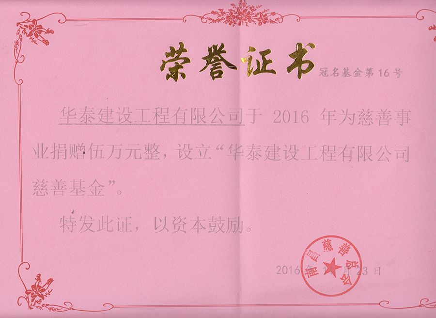 2016年获得南昌慈善总会颁发荣誉证书,并设立慈善基金