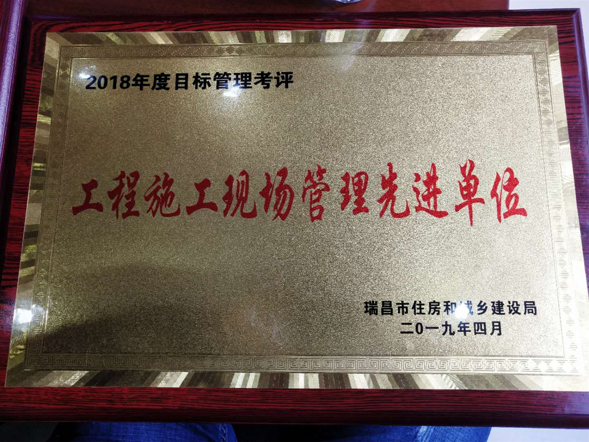 荣获2018年度瑞昌市工程施工现场管理先进单位